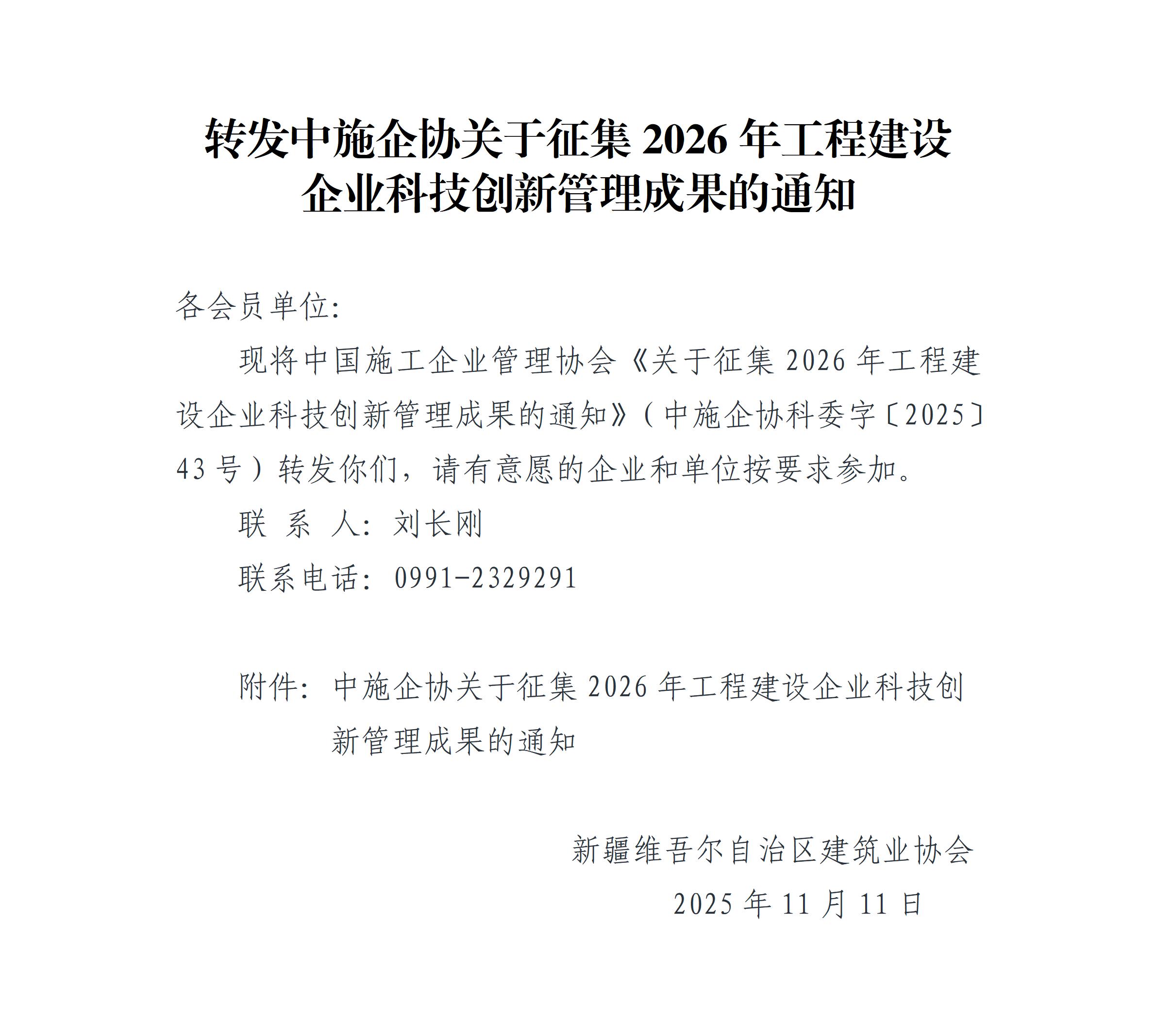 - 11-12 转发中施企协关于征集2026年工程建设企业科技创新管理成果的通知