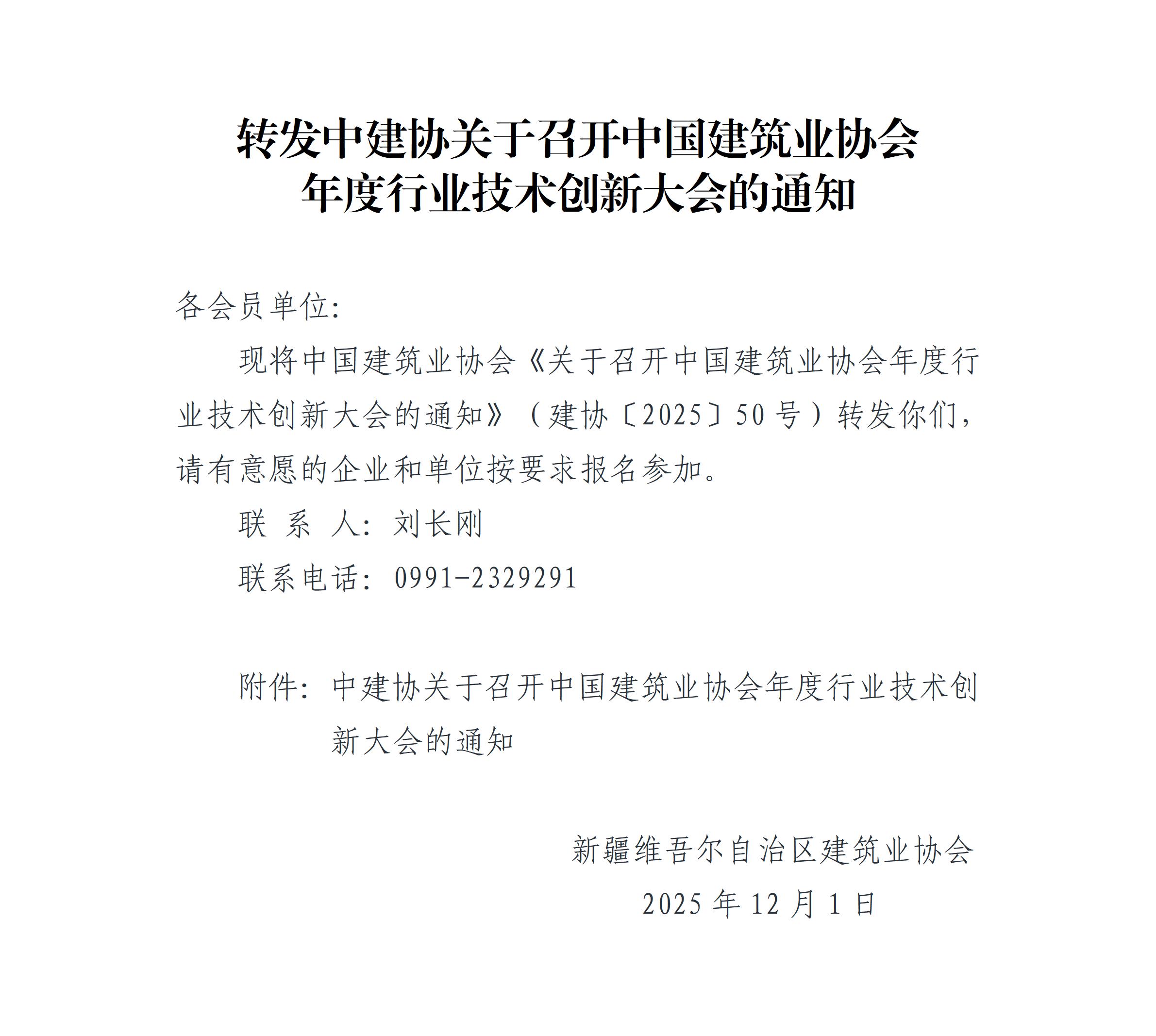 - 12-01 转发中建协关于召开中国建筑业协会 年度行业技术创新大会的通知