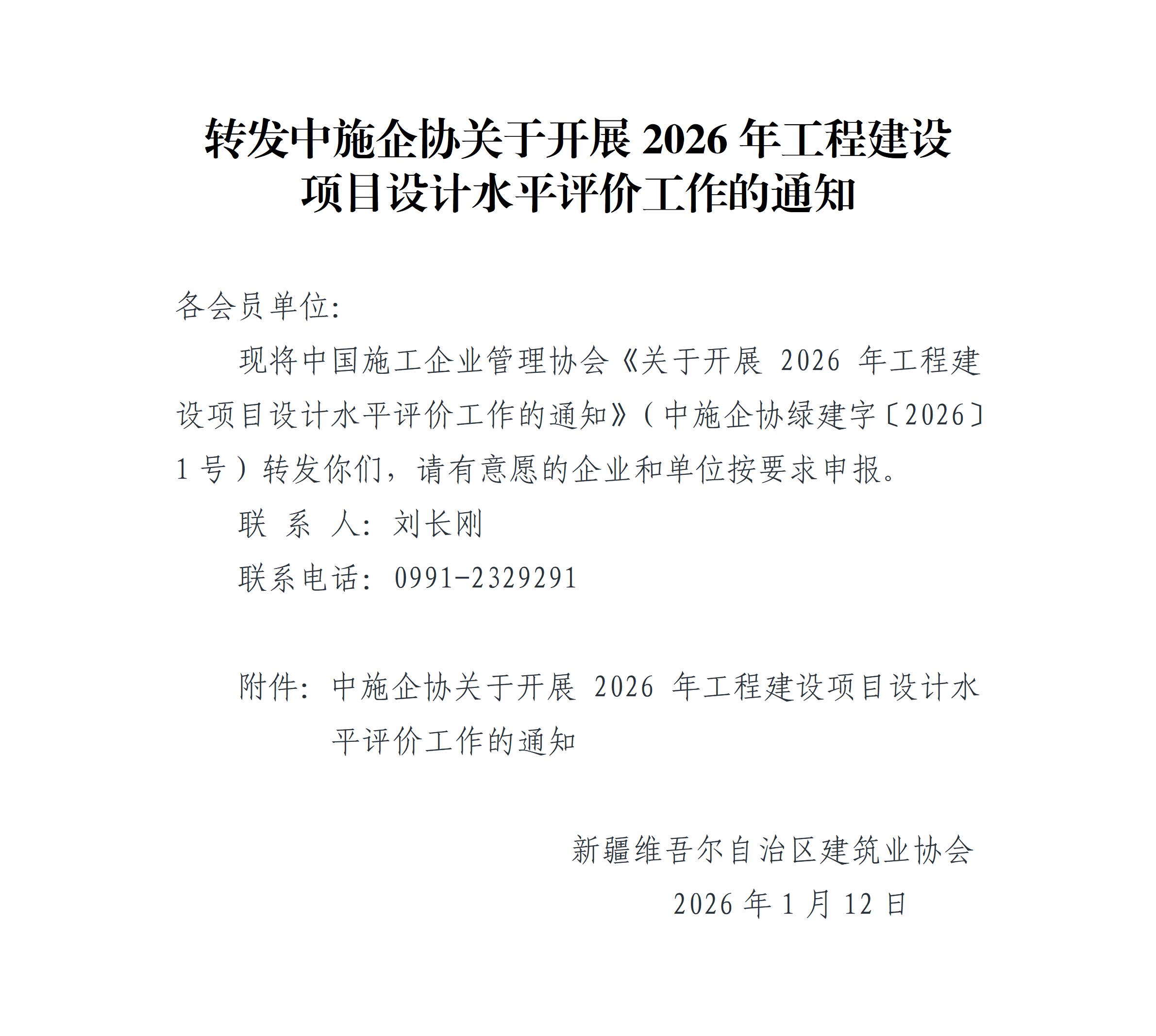 - 01-12 转发中施企协关于开展2026年工程建设项目设计水平评价工作的通知