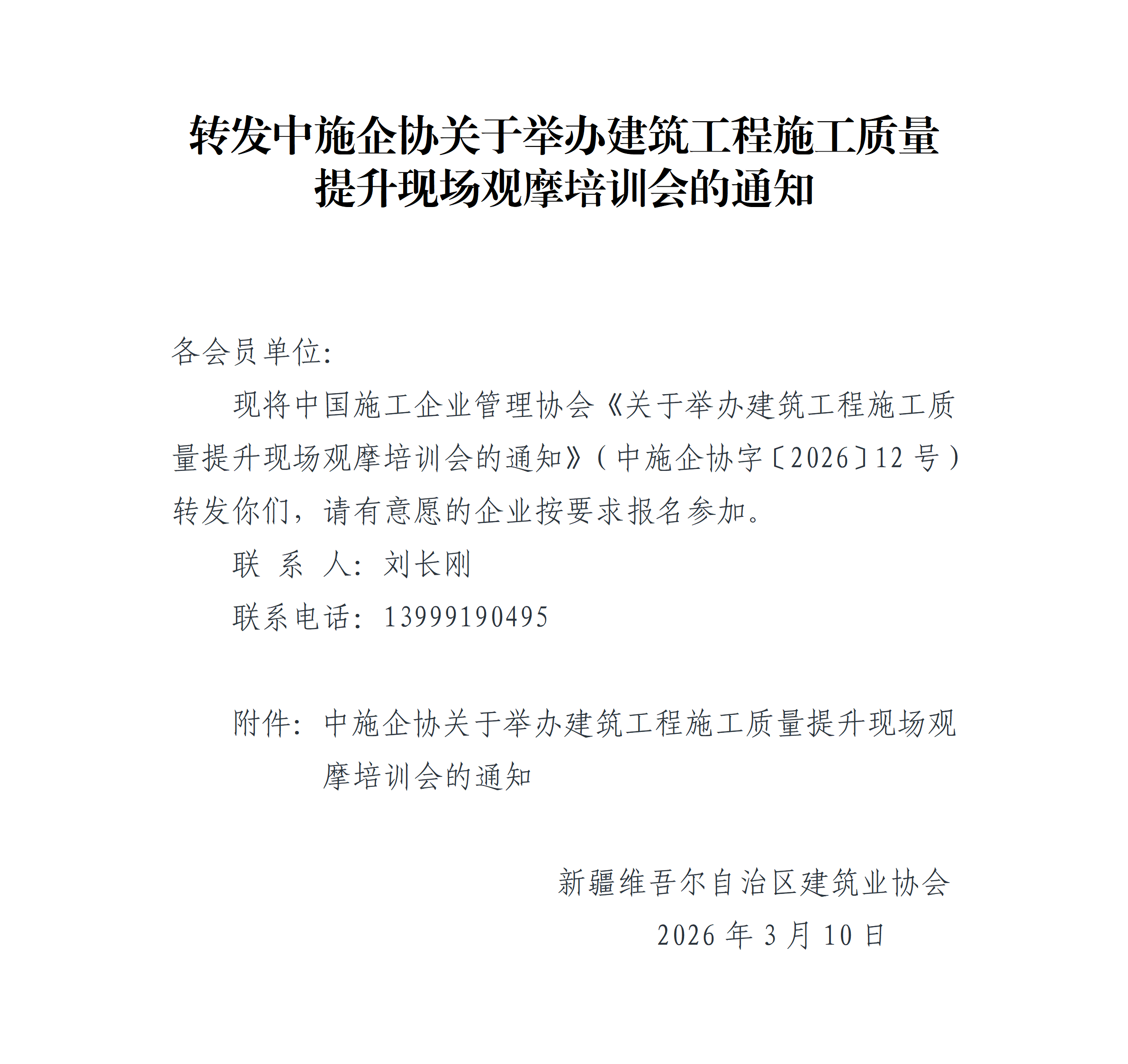 - 03-05 转发中施企协关于召开2026年中国施工企业管理协会质量工作会议的通知
