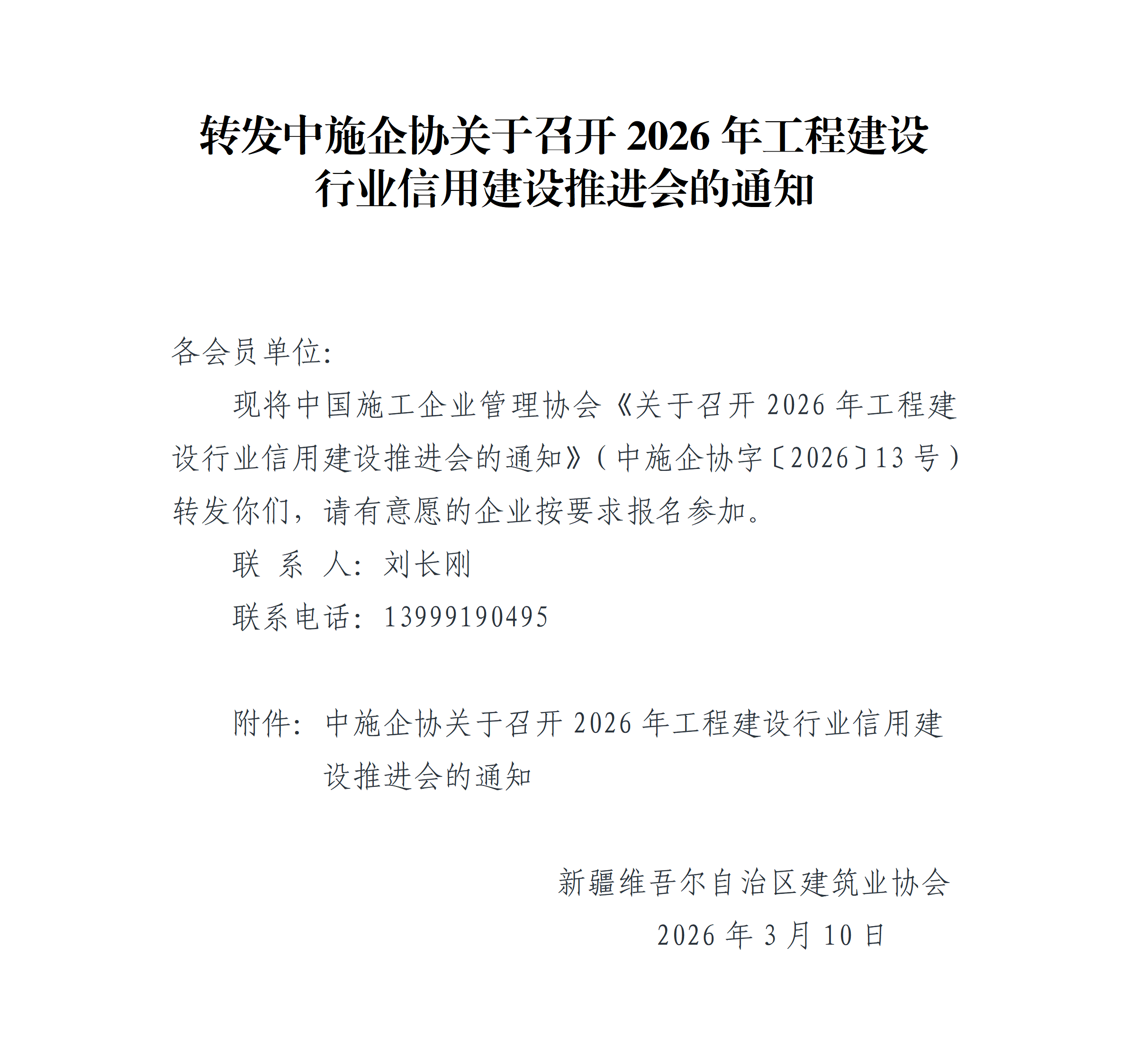 - 03-10 转发中施企协关于召开2026年工程建设行业信用建设推进会的通知