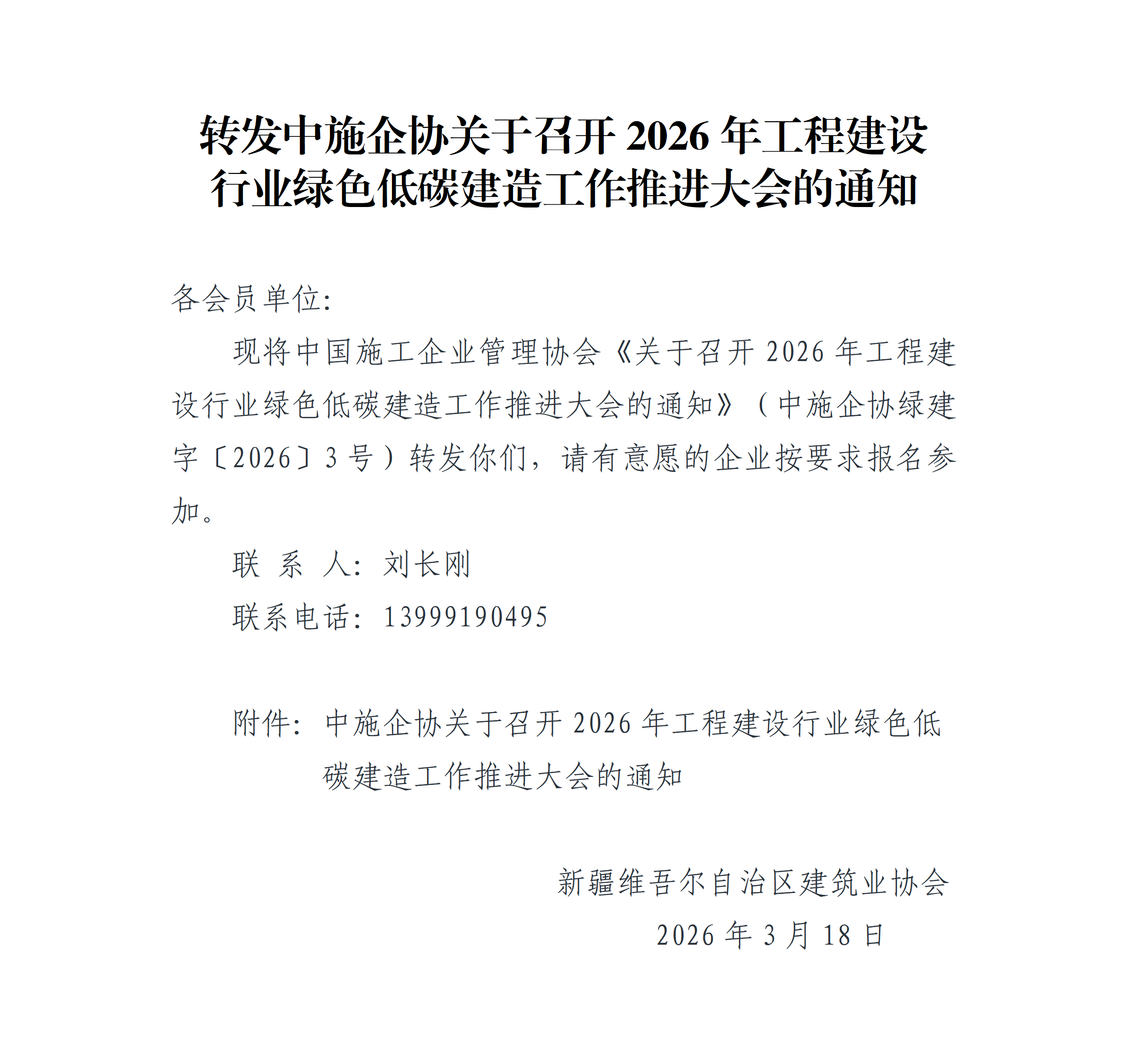 - 03-19 转发中施企协关于召开2026年工程建设行业绿色低碳建造工作推进大会的通知