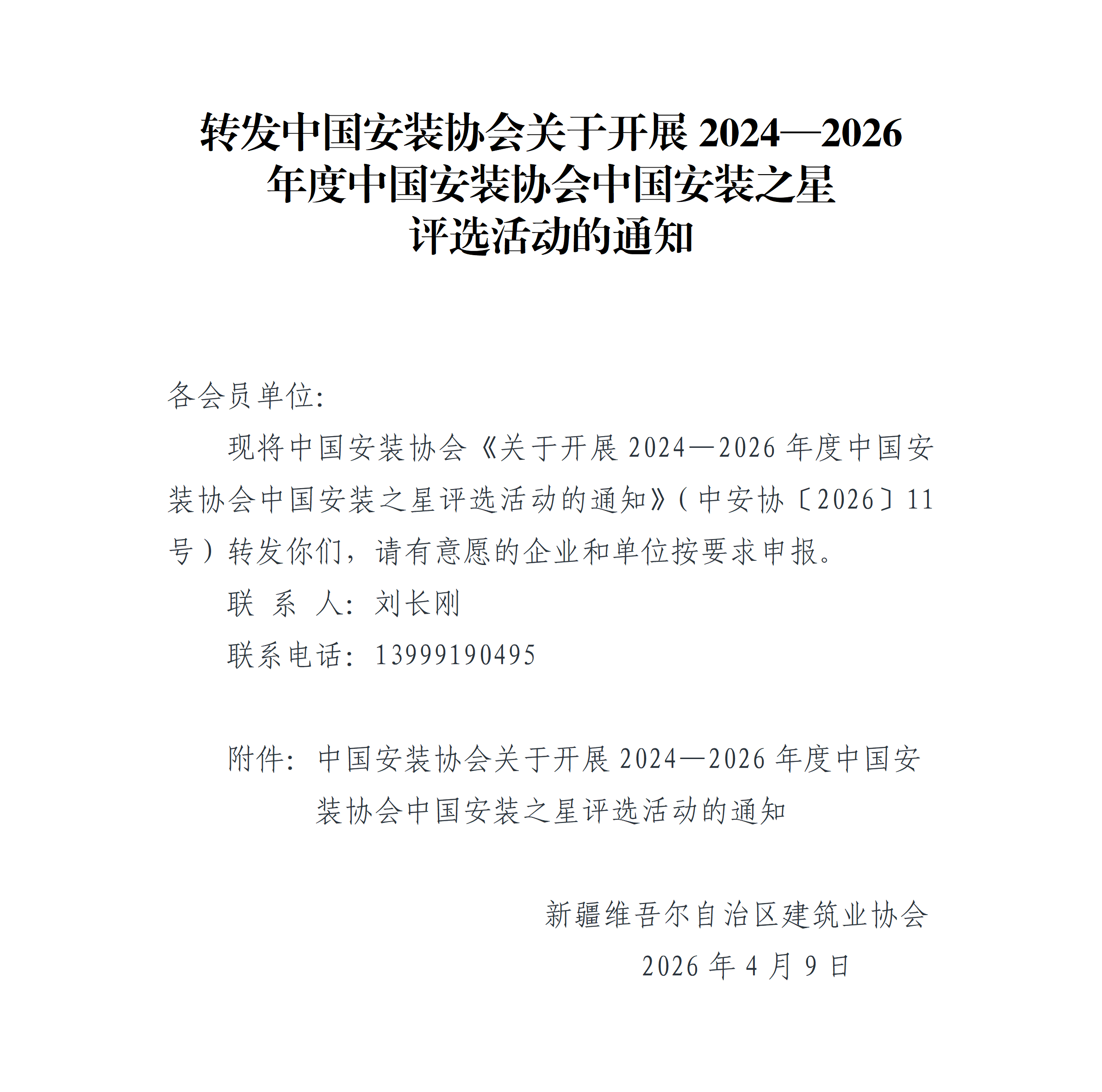 - 04-09 转发中国安装协会关于开展2024—2026年度中国安装协会中国安装之星评选活动的通知