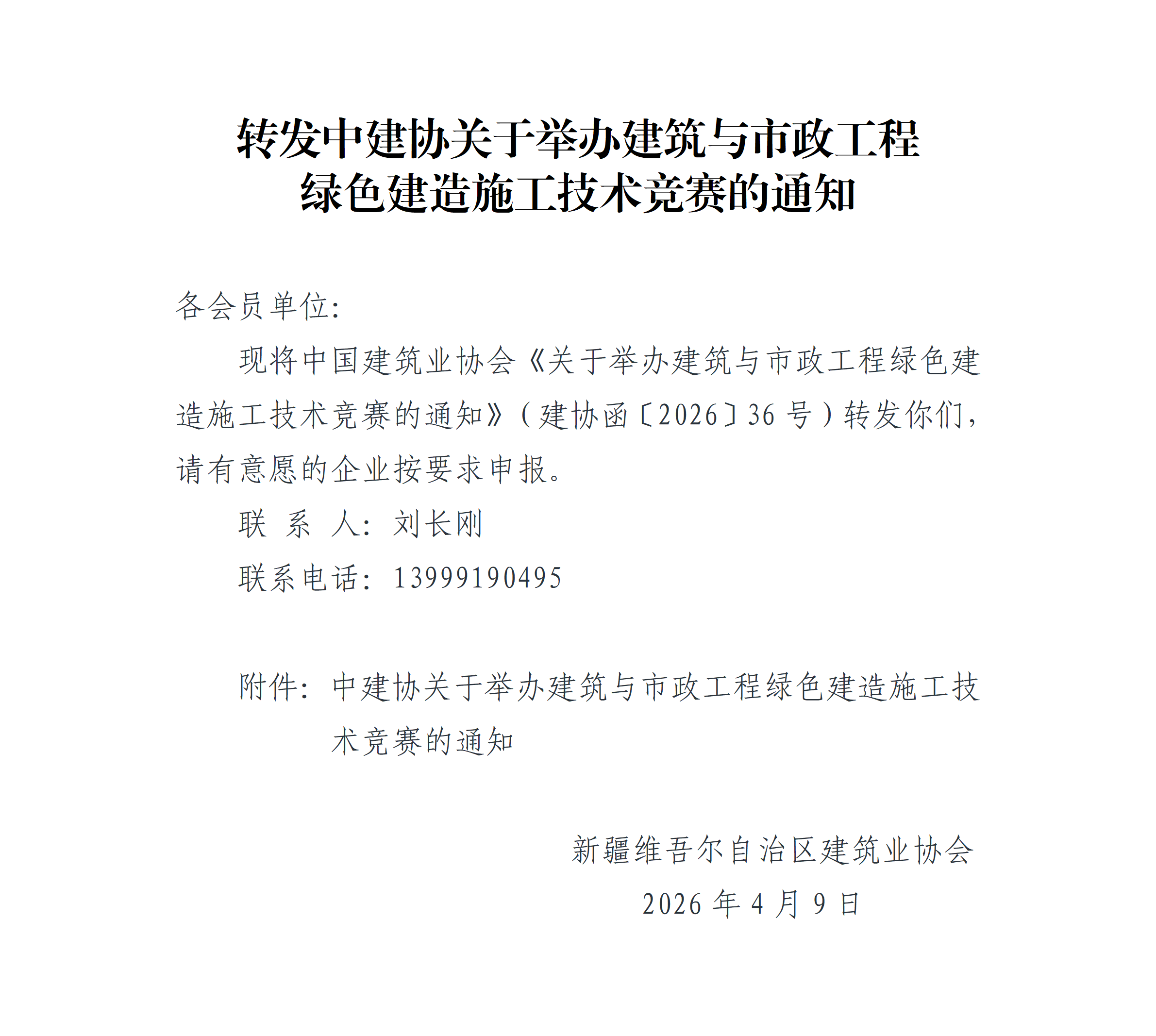 - 04-10 转发中建协关于举办建筑与市政工程绿色建造施工技术竞赛的通知