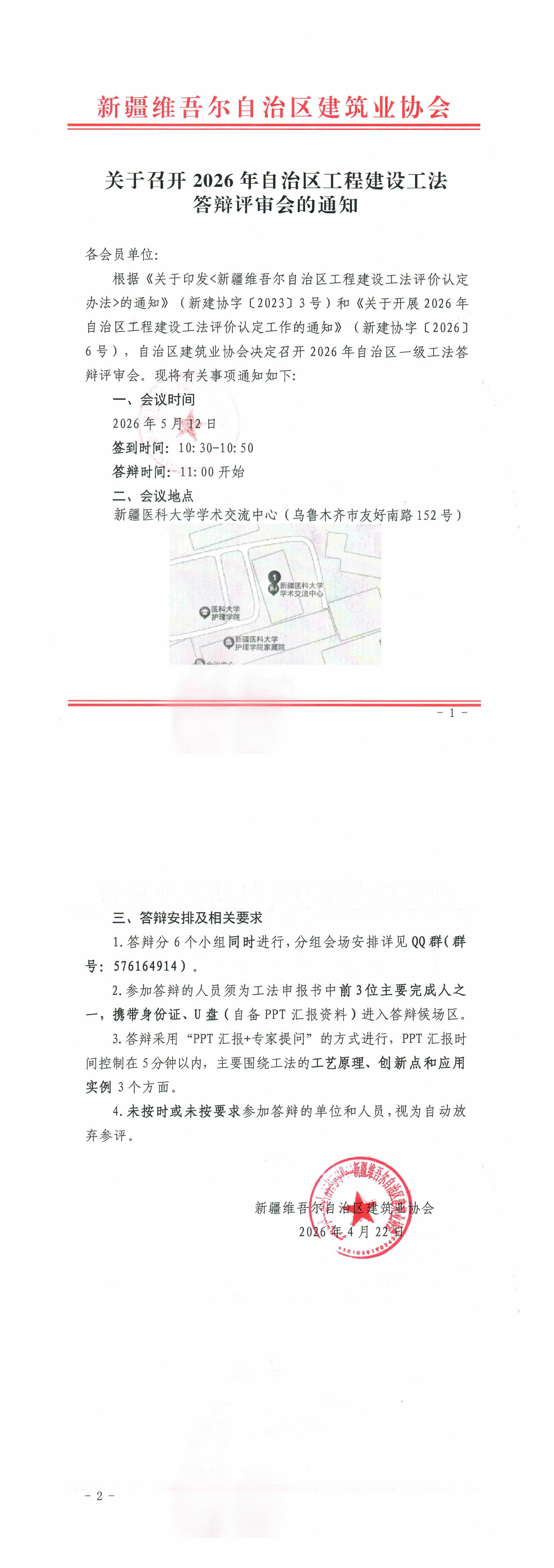 - 04-22 关于召开2026年自治区工程建设工法答辩评审会的通知