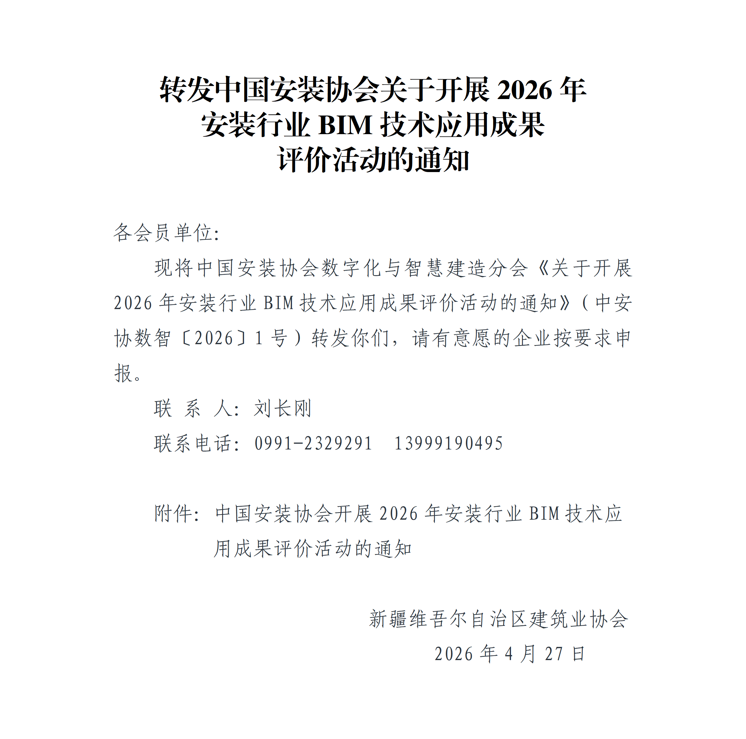 - 04-29 转发中国安装协会关于开展2026年安装行业BIM技术应用成果评价活动的通知